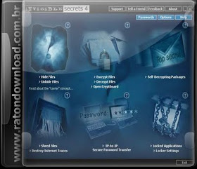 O programa encripta e esconde seus arquivos diretamente do Windows Explorer e envia-os se quiser para o seu programa de e-mail.