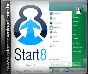 Stardock Start8 - Este programa é projetado para permitir que o estilo clássico menu "Iniciar" do Windows e Explorer 7. Ele possui suporte a skins, interface totalmente personalizável e funcionalidade. Fornece a capacidade de executar "Metro", como menu "Iniciar" - não toda a tela.