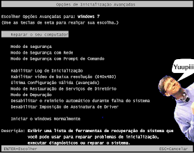 2 - Selecione a opção Reparar o seu Computador e pressione ENTER