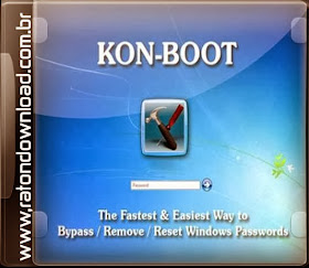 Kon- Boot - é um aplicativo que modifica o conteúdo do kernel do Windows em tempo real / em tempo de boot , ignorando o sistema de autorização e permitindo Windows para entrar em uma conta de usuário protegido por senha sem uma senha. Qual é a sua password favorito não é substituído quando você reiniciar o Windows e os conteúdos originais do núcleo e seu procedimento de autorização restaurado. Kon -Boot boot através de disquete / CD / USB , é executado automaticamente em um modo silencioso .